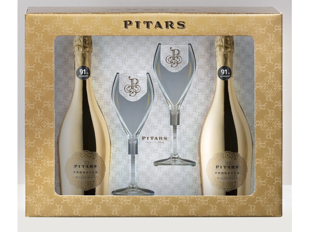 Dárkové balení 2ks Pitars se skleničkami - Prosecco Extra Dry 0,75L Gold